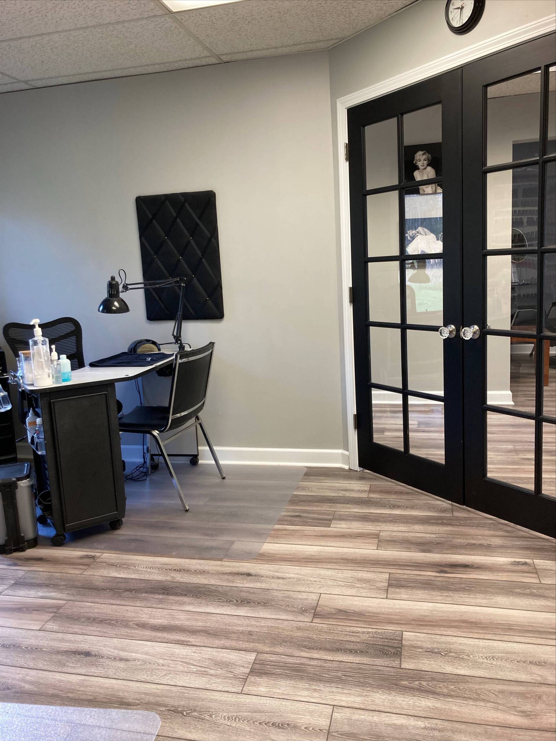 Watch TV together on our flat-screen TV while you relax in comfy chairs in our modern decor. Our pedicure room is designed for peaceful solitude, with its warm earthy decor and private restroom. Call us